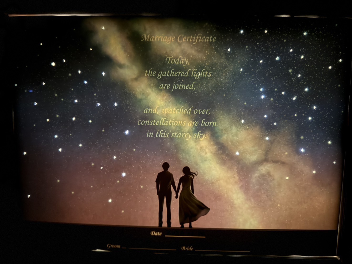 おふたりこだわりの結婚証明書は「星空」の証明書です